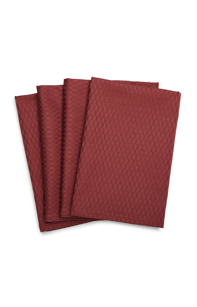 Classic damask weaved napkin in wine red. Tile Damask Napkins is understated luxury in a timeless and beautiful design. Tile napkin comes in set of four.