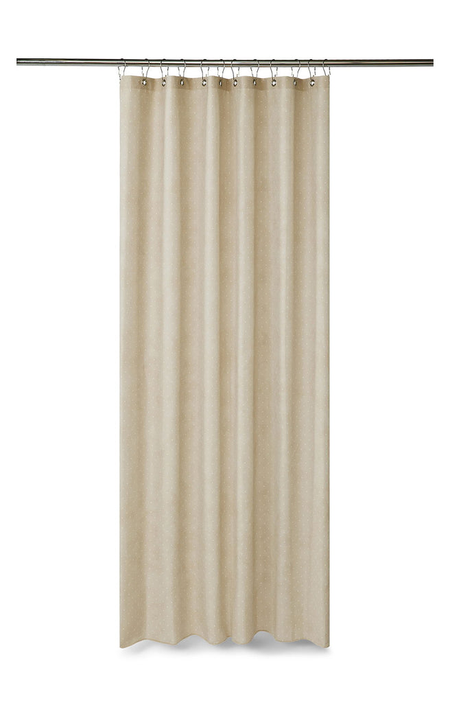 Exclusive antibacterial treated shower curtain. 12 eyelets for easy and beautiful hanging. Mono colored print with small dots and water effect.