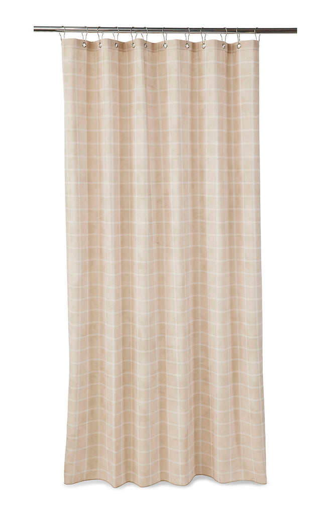 Exclusive antibacterial treated shower curtain. Printed with checkered pattern with water effect. 12 eyelets for easy and beautiful hanging. Combine with your favourite Compliments towel and bath mat.