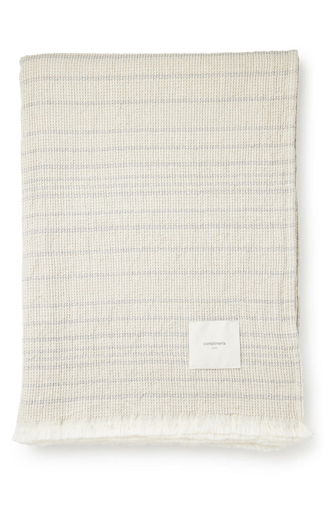 Throw with fringes in an exclusive linen and cotton blend. The soft look and grey stripes against a sand-colored base, makes this beautiful Cielo plaid a favorite both indoor and outdoor. STANDARD 100 by OEKO-TEX® certified.
