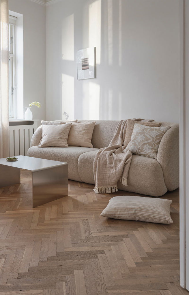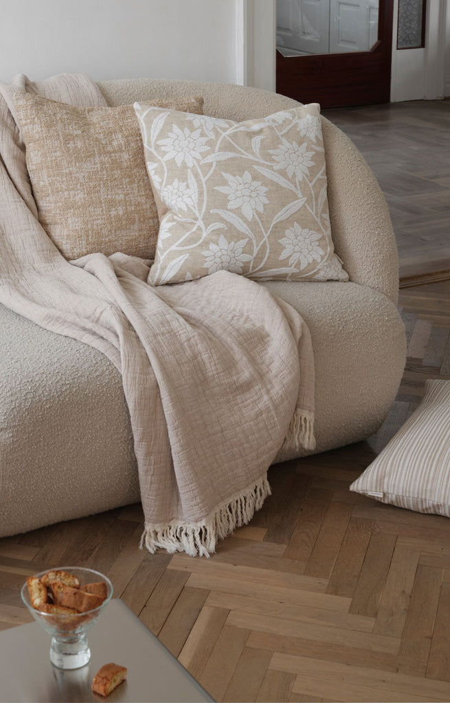 Two faced trendy crinkled throw in 100% cotton. Match with River cushions in your favourite sizes. STANDARD 100 by OEKO-TEX® certified.
