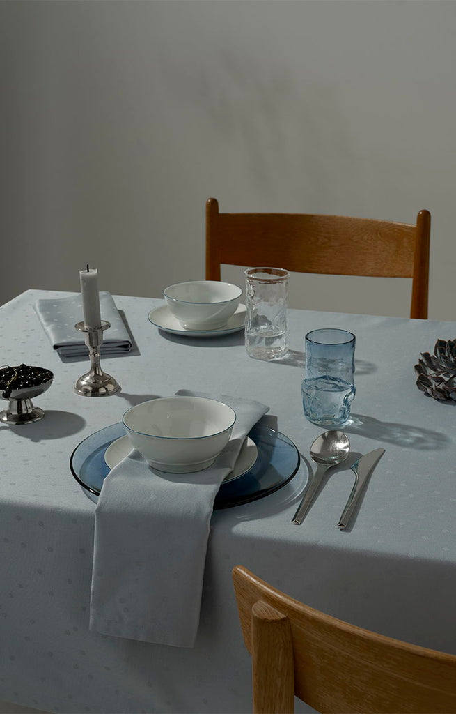 Small and light dots scattered in a simple design give the Confetti Table Cloth a charming and playful expression.